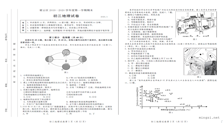 密云区2019—2020学年度第一学期期末 初三地理试卷20201